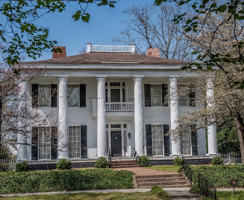 In the fall of 1864, Sherman's Union military campaign marched into and past Covington. The Usher family clustered on the balcony to watch; not knowing exactly where the troops were headed. Not every home was spared from burning as the troops moved southward. See the original façade featuring six Doric columns.